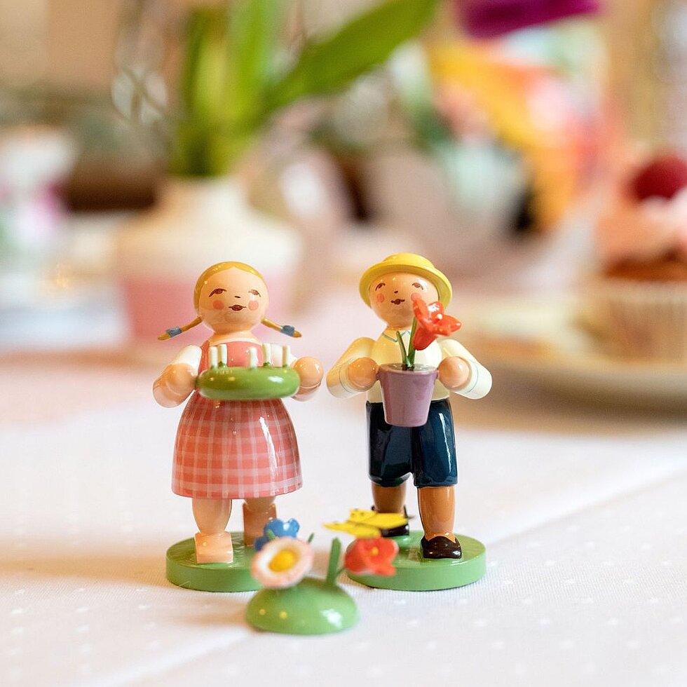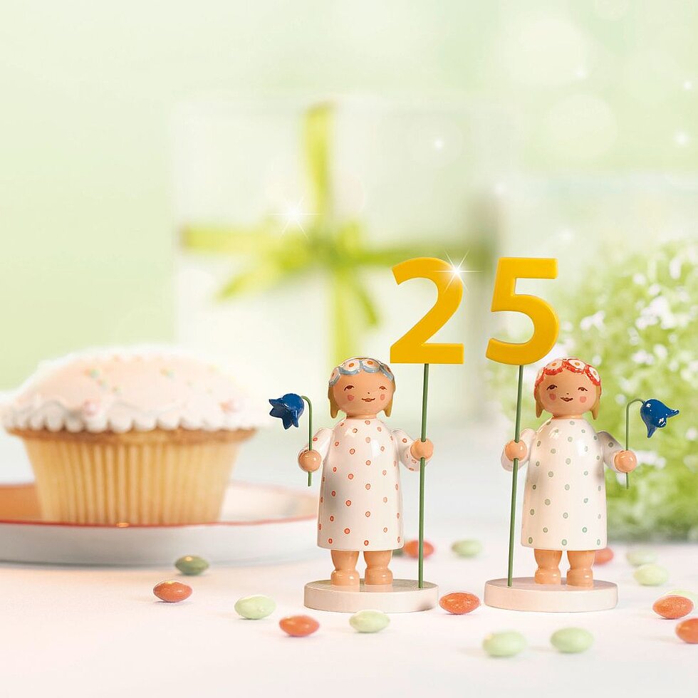 With their polka dot dresses, sunshine yellow numbers and blue flowers in their hands, the Number Girls certainly stand out on a table laid for a celebration. Each girl is given a set of numbers from 0 to 9. The numbers up to nine all feature one girl, from number ten onward, she is joined by a second charming maiden. Thus, the two can adorn either a table or cake, year after year.