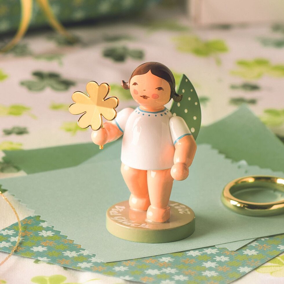 Sometimes, life presents us with the hardest of challenges. Then, it’s all about holding your nerve, gritting your teeth, and getting through it! This little heavenly companion will give you the confidence and courage you need. With a sweet smile and a four-leaf clover, this luck-bringer offers their owner protection and encourages a positive view of the future. A short message, e.g. “Good luck”, can be inscribed on the base of the figurine.